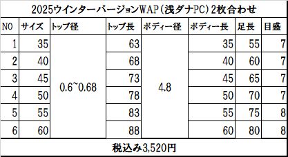 • 2025クルージャンウインターバージョンWAP(浅ダナ)PC2枚合わせ6本セット