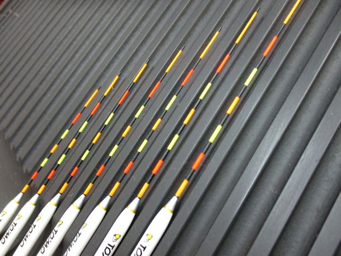 タナに届いてからはスローテーパー仕様(1.1-1.3mm径)のパイプトップでしっかりとしたエサ持ちや耐えの表現からの正確なアタリがでるようにと構想。