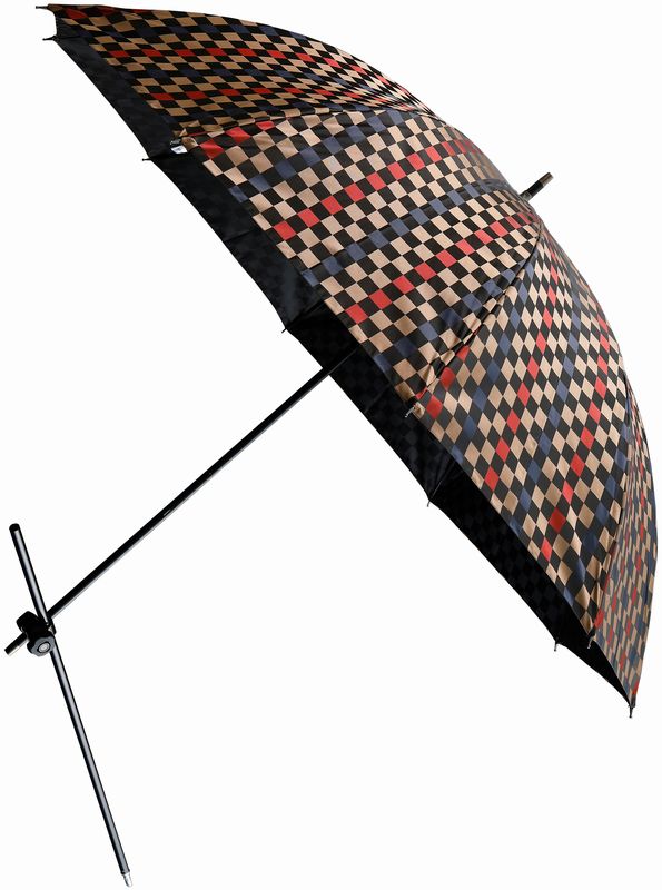 かちどきパラソルに使用している生地は、通常使用されている傘用生地の糸より太く、糸によりをかけて強度を増したウーリー糸を通常より打ち込み本数を多くした特注生地です。また、先染め糸で柄を表現していますので、後染めタイプより色あせしにくい特徴があり、プリントタイプでは出せない素材感が現れ高級感を出しています。