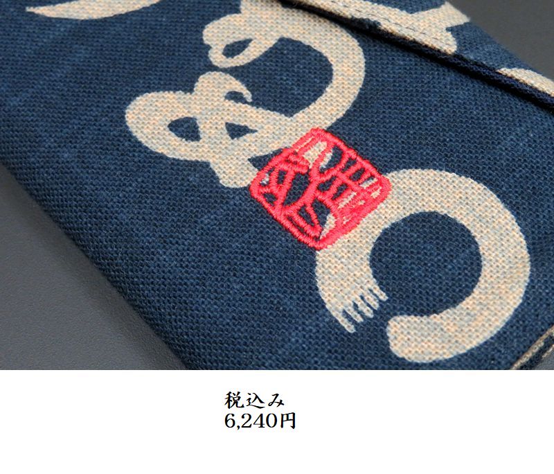藍染風 仕掛巻きケース かまわぬ柄 こま鳥落款刺繍入り