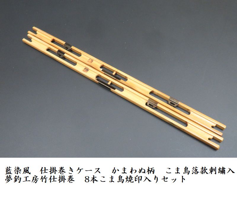 • オリジナル 藍染風 仕掛巻きケース かまわぬ柄 こま鳥落款刺繍入り