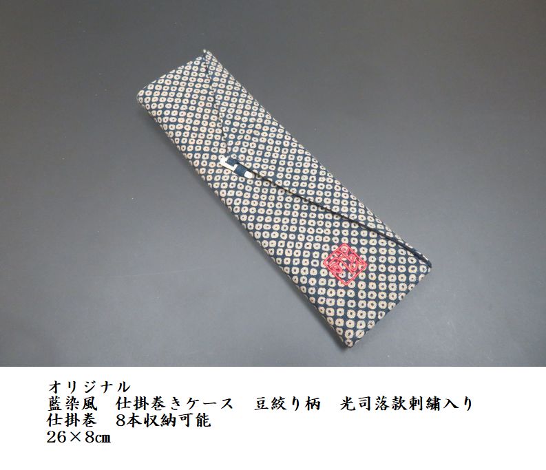 藍染風 仕掛巻きケース 豆絞り柄 光司落款刺繍入り