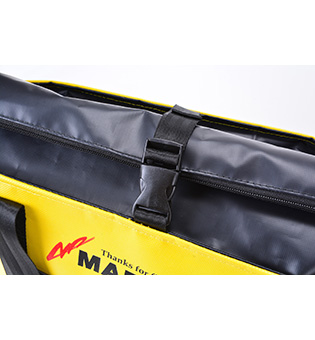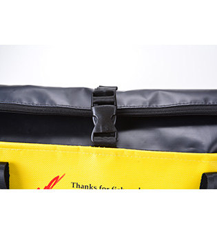 開口部がロールアップでき、バックルで留められますので、