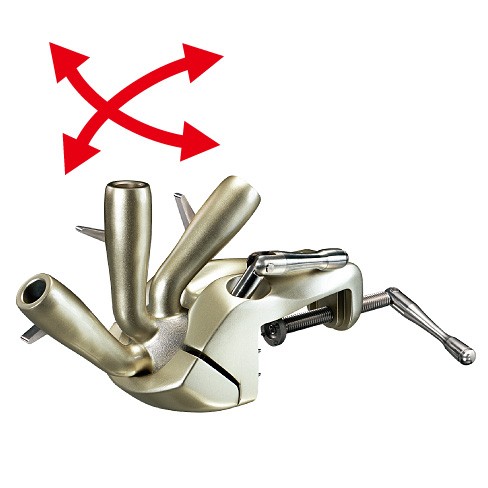 縦付けでも横付けでも、ボールジョイントロック構造採用で自由な広角度調整が可能なヘらパラソル専用の万力。