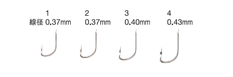 これを解決するために、独自のポイント打ち形状を持たせ、吸い込みの良い柔らかいオカメでもエサ抜けしにくい鈎となりました。